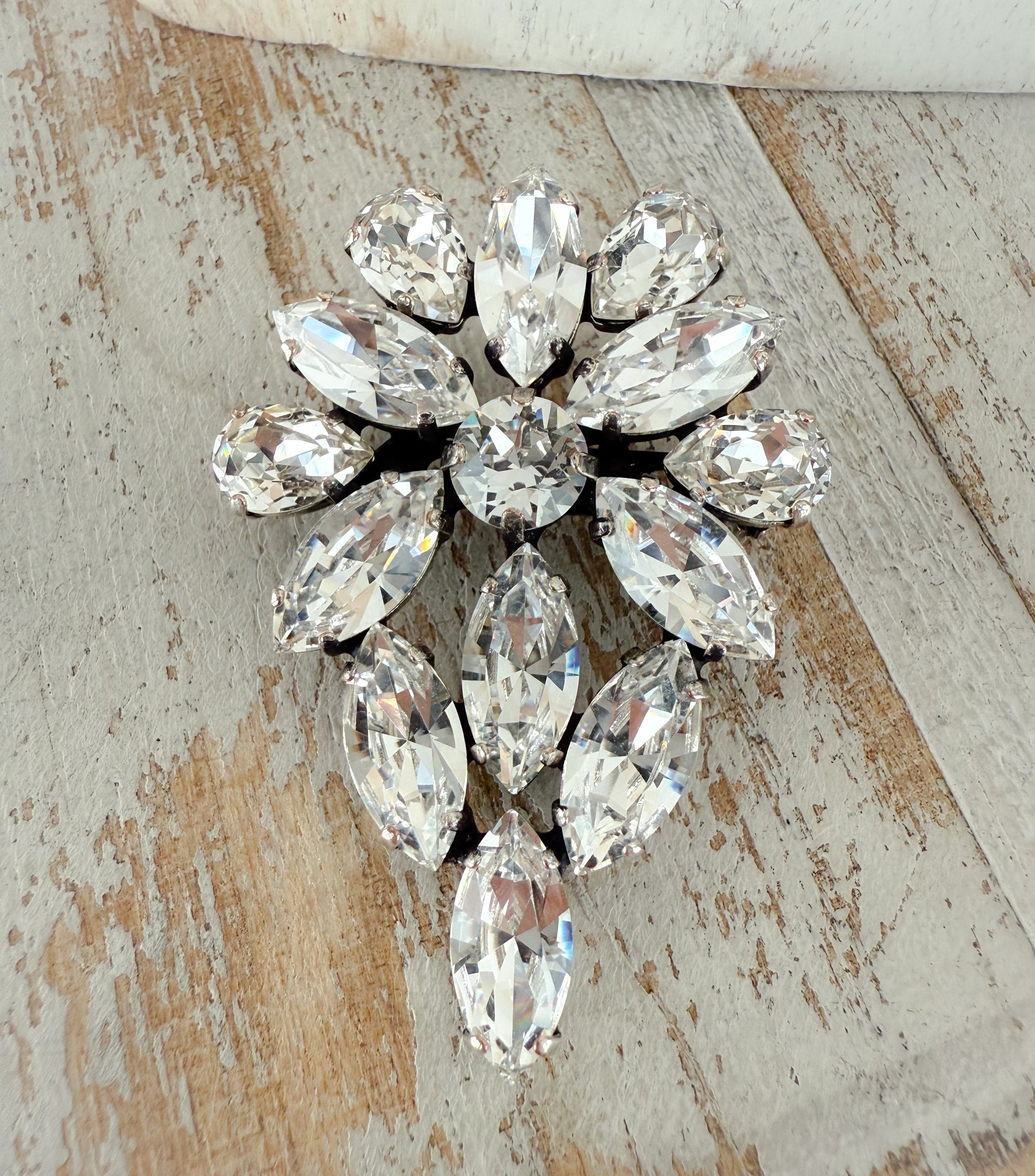 This stunning Austrian crystal brooch is the perfect embellishment for any ensemble.